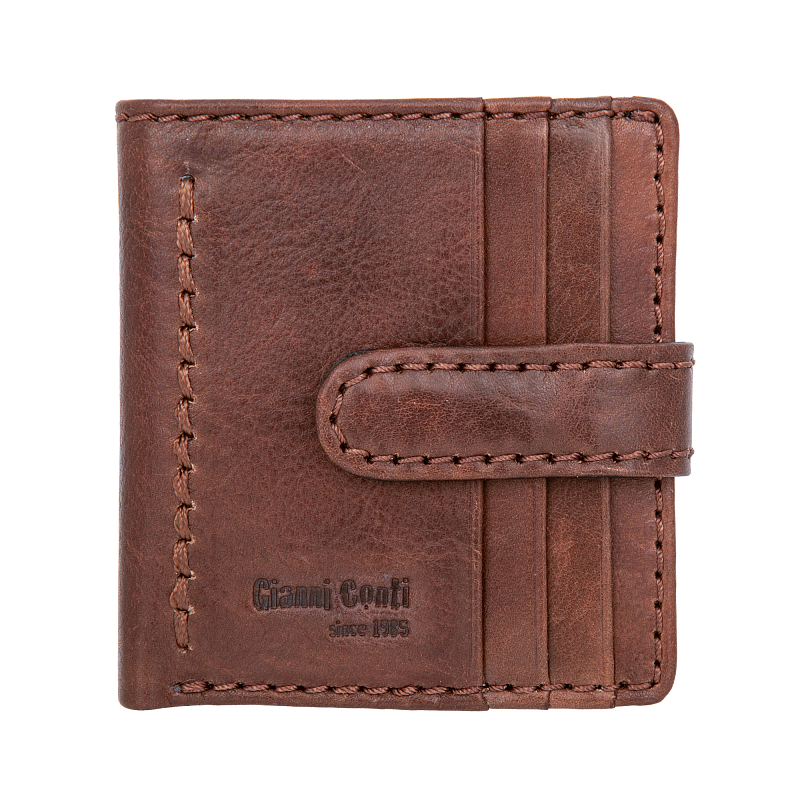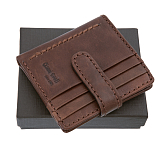 Мужское кожаное портмоне-картхолдер от Gianni Conti. Выполнено из натуральной патинированной кожи коричневого цвета. Портмоне раскладывается пополам, внутри одно отделение для купюр и шесть карманов для пластиковых карт. С наружной стороны также расположены шесть кармашков для пластиковых карт. Закрывается клапаном на кнопку. Поставляется в фирменной коробке от бренда Gianni Conti.