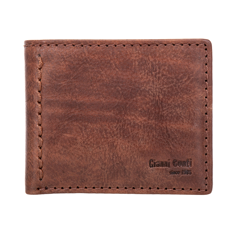 Мужское портмоне из натуральной кожи от бренда Gianni Conti. Внутри два отдела для купюр, карман для монет на кнопке, четыре кармашка для пластиковых карт и четыре потайных кармана.
