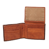 Внутри два отделения для купюр, три потайных кармана, сетчатый карман и тринадцать кармашков для пластиковых карт.