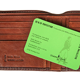 Внутри два отделения для купюр, два потайных кармана и десять кармашков для пластиковых карт.