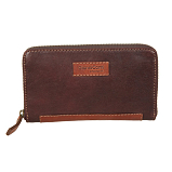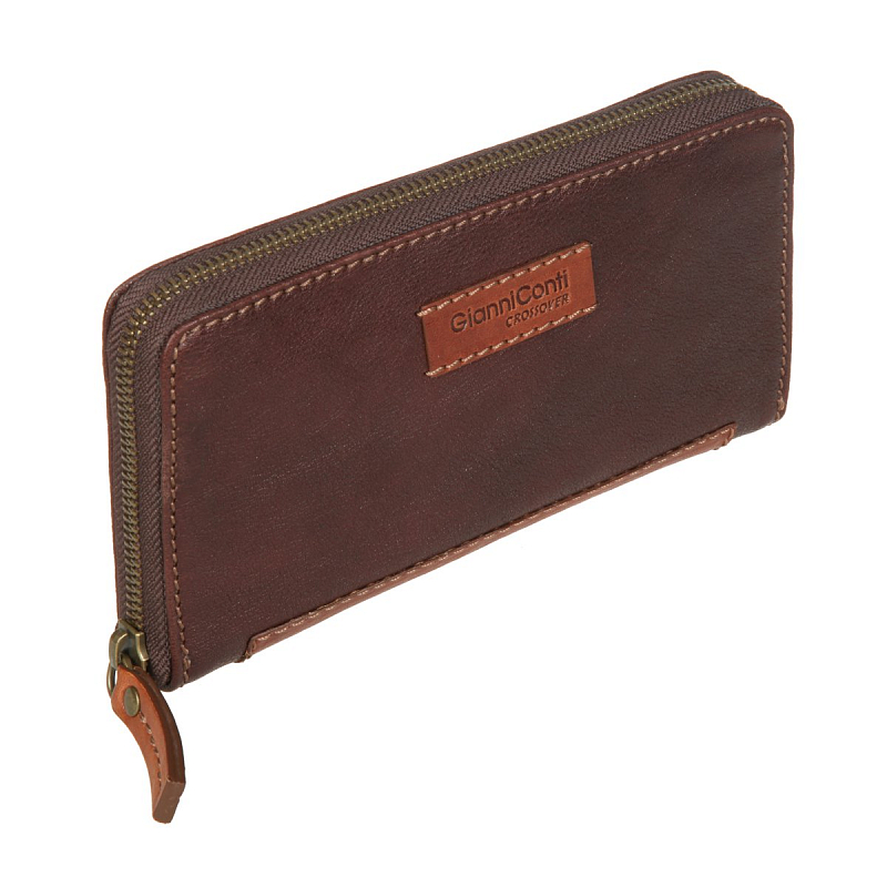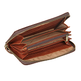 Портмоне закрывается по периметру на молнию. Внутри четыре отдела для купюр, отделение для мелочи на молнии, два кармана для документов, восемь кармашков для пластиковых карт.