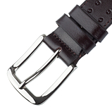 Джинсовый ремень из натуральной цельной кожи шириной 4 см. Пряжка стального цвета. Ремень имеет 5 отверстий для регулировки и винтовое крепление для укорачивания. Размер пряжки: 5,5 х 5,5 см.