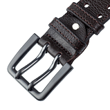 Джинсовый ремень из натуральной кожи шириной 4,5 см. Пряжка черного цвета. Ремень имеет винтовое крепление для укорачивания. Размер пряжки: 6 х 5,5 см.