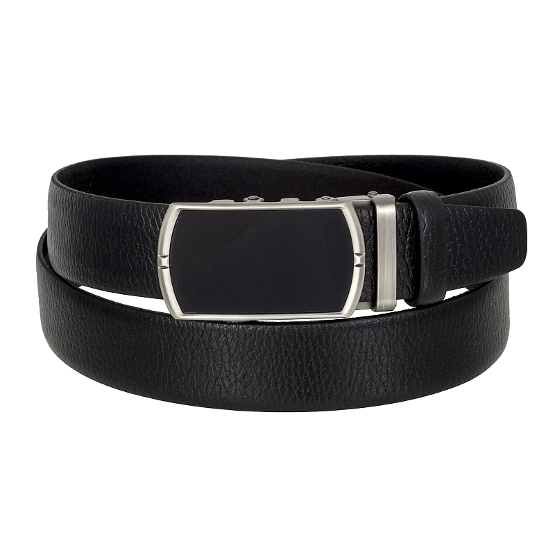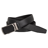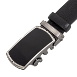 Ремень чёрного цвета из натуральной кожи шириной 35 мм с автоматической пряжкой. Пряжка серого цвета матовая с чёрной блестящей вставкой по центру. Регулировка по длине. Подарочная упаковка.