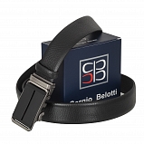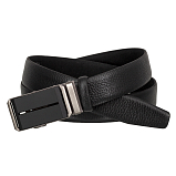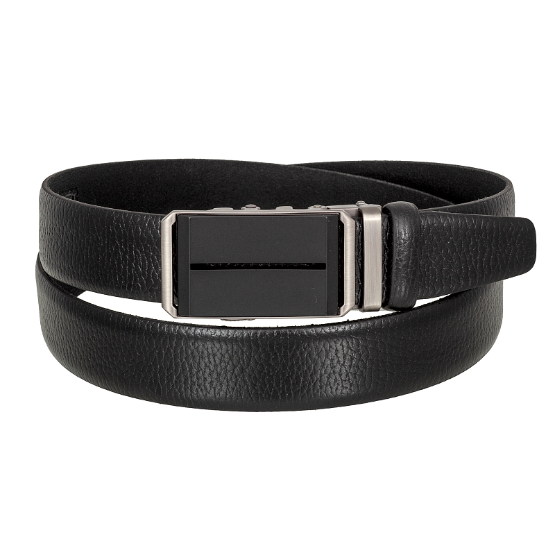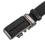 Ремень чёрного цвета из натуральной кожи шириной 35 мм с автоматической пряжкой. Пряжка серого цвета матовая с чёрной матовой вставкой по центру. Регулировка по длине. Подарочная упаковка.