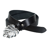 Кожаный ремень шириной 40 мм. Пряжка 3-D стального цвета - размер пряжки: 9 х 7 см. Модель имеет 5 отверстий для регулировки и винтовое крепление для укорачивания.