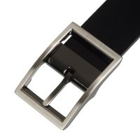 Мужской брючный двухсторонний ремень из натуральной кожи. Идеальное решение для использования в брюках разного цвета. Пряжка симметричная белая, сатинированная. Размер: 4,2 х 5,8 см.