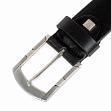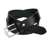 Кожаный ремень шириной 40 мм. Пряжка стального цвета, размер пряжки: 6 х 5,1 см. Модель имеет 5 отверстий для регулировки и винтовое крепление для укорачивания.