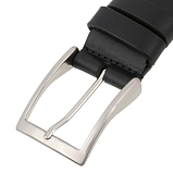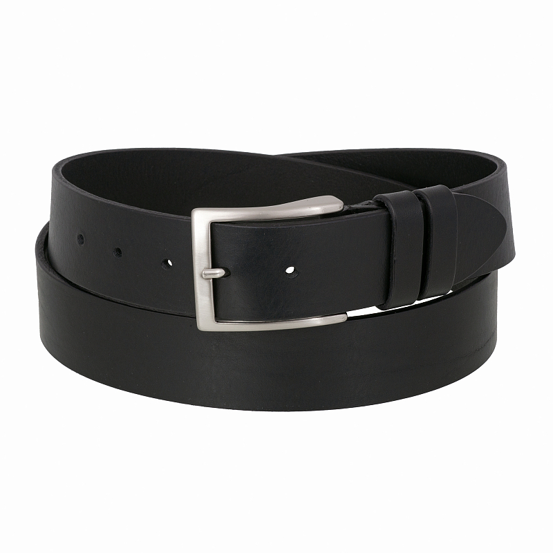 Ремень для джинсов чёрного цвета из цельной натуральной кожи шириной 40 мм. Пряжка белого цвета тёртая. Подарочная упаковка.