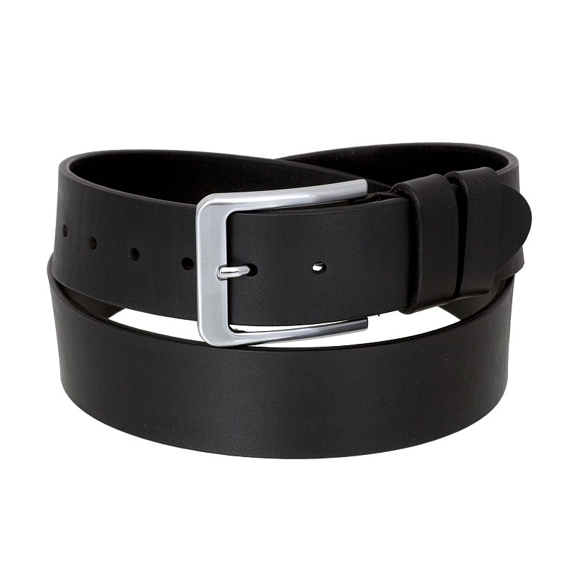Ремень для джинсов чёрного цвета из цельной натуральной кожи шириной 45 мм. Пряжка 6,5 * 5,8 см., белого цвета блестящая. Подарочная упаковка.