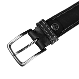 Джинсовый ремень из натуральной цельной кожи шириной 4 см. Ремень имеет 5 отверстий для регулировки и винтовое крепление для укорачивания. Размер пряжки: 5,7 х 4,8 см. Поставляется в фирменной коробке.