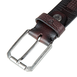 Мужской ремень для джинсов. Особенностью этой модели является натуральное кожаное полотно высокого качества с гравировкой по всей длине. Ремень укорачивается по длине. Пряжка 5,5 х 5 см. Поставляется в фирменной коробке.