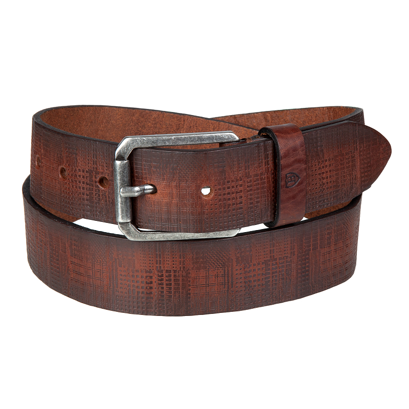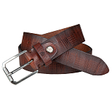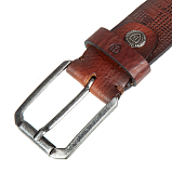 Мужской ремень для джинсов. Особенностью этой модели является натуральное кожаное полотно высокого качества с гравировкой по всей длине. Ремень укорачивается по длине. Пряжка 5,5 х 5 см. Поставляется в фирменной коробке.