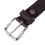 Мужской ремень для джинсов. Особенностью этой модели является натуральное кожаное полотно высокого качества с гравировкой по всей длине. Ремень укорачивается по длине. Пряжка 5,5 х 5 см. Поставляется в фирменной коробке.