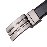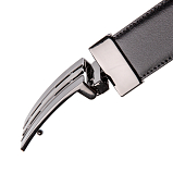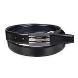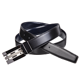 Мужской брючный ремень. Изготовлен из высококачественной кожи. Универсальная классическая двусторонняя модель - простым поворотом пряжки меняет цвет полотна (чёрный/синий). Размер пряжки: 5,7 см х 3,7 см. Поставляется в фирменной коробке.