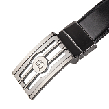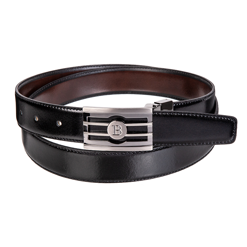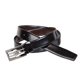 Мужской брючный ремень. Изготовлен из высококачественной кожи. Универсальная классическая двусторонняя модель - простым поворотом пряжки меняет цвет полотна (синий/коричневый). Размер пряжки: 5,7 см х 3,7 см. Поставляется в фирменной коробке.
