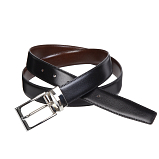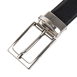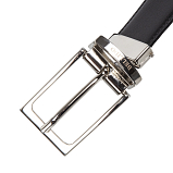 Мужской брючный ремень. Изготовлен из высококачественной кожи. Универсальная классическая двусторонняя модель - простым поворотом пряжки меняет цвет полотна (чёрный/коричневый). Размер пряжки: 5 см х 3,7 см. Поставляется в фирменной коробке.