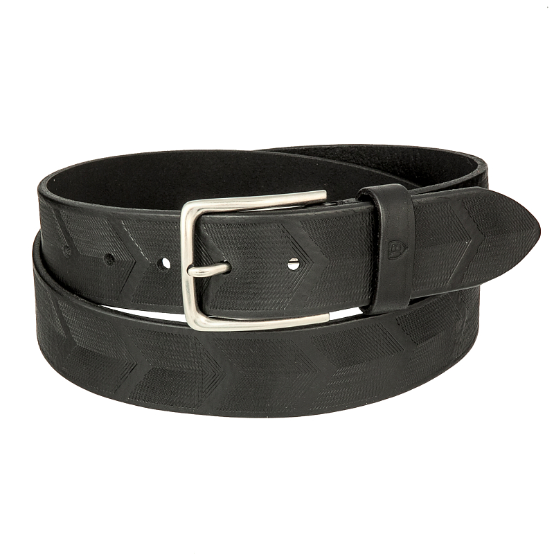 Мужской ремень для джинсов. Особенностью этой модели является натуральное кожаное полотно высокого качества с гравировкой по всей длине. Ремень укорачивается по длине. Пряжка 5,5 х 5 см. Поставляется в фирменной коробке.