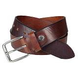 Джинсовый ремень из натуральной цельной кожи с тиснением шириной 4 см. Пряжка стального цвета. Ремень имеет 5 отверстий для регулировки и винтовое крепление для укорачивания. Размер пряжки: 5,5 х 5 см.