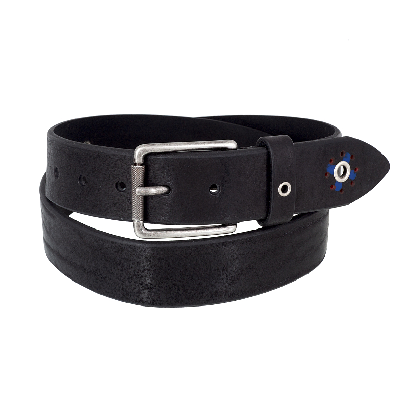 Джинсовый ремень из натуральной цельной кожи шириной 4 см. Пряжка стального цвета. Ремень имеет 5 отверстий для регулировки и винтовое крепление для укорачивания. Размер пряжки: 5,5 х 5 см.
