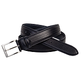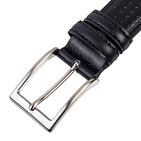 Мужской классический ремень для брюк из натуральной кожи, шириной 35 мм. Модель имеет декоративную строчку в тон ремня, на лицевой стороне нанесен рисунок методом тиснения. Пряжка стального цвета, размер: 4 х 5 см.