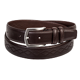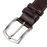 Мужской классический ремень для брюк из натуральной кожи, шириной 35 мм. Модель имеет декоративную строчку в тон ремня и винтовое крепление для укорачивания. Пряжка стального цвета, размер: 4 х 5 см.