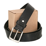 Ремень для джинсов чёрного цвета из цельной натуральной кожи шириной 40 мм. Пряжка матовая серого цвета: 5,5 * 5 см. Подарочная упаковка.