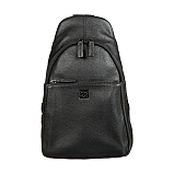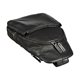 Стильная чёрная сумка-слинг с лямкой через плечо, выполнена из мягкой натуральной кожи Vachetta. Внутри одно вместительное отделение, карман для документов на молнии, два открытых кармана и два кармашка для авторучек. На лицевой стороне два кармана на молниях, на внутренней стороне вертикальный карман на молнии.