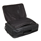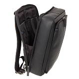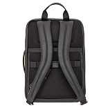 Рюкзак-чемодан с отсеком для ноутбука, для деловых поездок и путешествий. Первое отделение рюкзака имеет вертикальную загрузку, в нём есть внутреннее отделение для планшета или ноутбука на липучке. Второе отделение оснащенно карманом с сеткой на молнии, за ним отделение с перекрестными лямками и карманом на молнии. На внутренней стороне дверцы сумки находится карман на молнии. На спинке рюкзака размещён карман на липуче, а также крепление на ручку чемодана для удобной переноски. Присутствуют плечевые регулируемые лямки. На боковой стороне рюкзак есть дополнительная ручка, Размеры: 40 х 30 х 18 см.