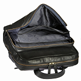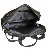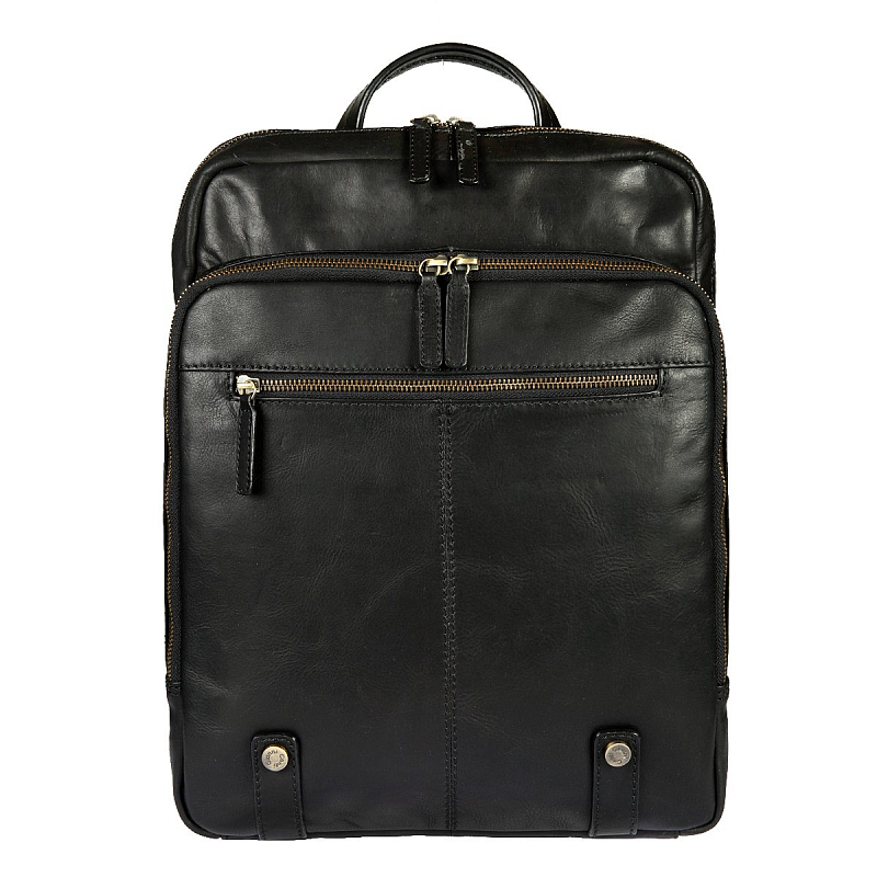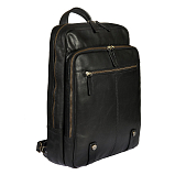 Мужской кожаный рюкзак Gianni Conti. Закрывается на двустороннюю молнию. Внутри 1 отделение, в котором расположены карман на молнии, отделение для планшета на липучке. С внешней стороны на лицевой стенке два кармана на молниях, в главном кармане расположены 3 кармана для документов, 2 кармашка для мелких предметов и держатель для авторучки. На задней стенке имеется карман на молнии. Рюкзак оснащён регулируемыми плечевыми лямками. Размеры: 37 х 30 х 11 см.