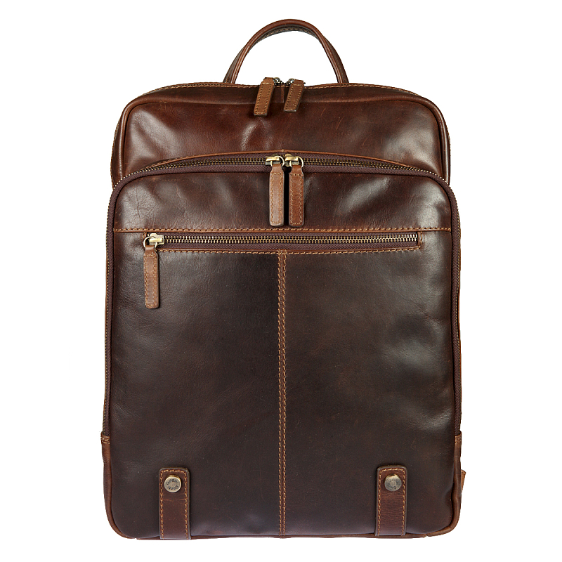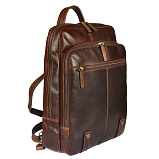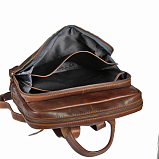 Мужской кожаный рюкзак Gianni Conti. Закрывается на двустороннюю молнию. Внутри 1 отделение, в котором расположены карман на молнии, отделение для планшета на липучке. С внешней стороны на лицевой стенке два кармана на молниях, в главном кармане расположены 3 кармана для документов, 2 кармашка для мелких предметов и держатель для авторучки. На задней стенке имеется карман на молнии. Рюкзак оснащён регулируемыми плечевыми лямками. Размеры: 37 х 30 х 11 см.