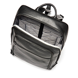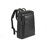Рюкзак Gianni Conti из натуральной кожи, черного цвета, с двумя отделами на двойной молнии. Внутри имеется двойное отделение для планшета или ноутбука на липучке, карман на молнии, два кармашка для мелких предметов, держатель для авторучки. С внешней стороны на лицевой стенке карман на молнии. Имеется ручка и регулируемые плечевые лямки. Сзади имеется приспособление для крепления на ручку чемодана и карман на молнии.