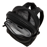 Рюкзак Gianni Conti из натуральной кожи, черного цвета, с одним отделом на двойной молнии. Внутри имеется отделение для планшета или ноутбука на липучке, карман для бумаг. С внешней стороны на лицевой стенке два кармана на молнии, в которых карман на молнии, два кармашка для мелких предметов, держатель для авторучки. Имеется ручка и регулируемые плечевые лямки. Сзади имеется приспособление для крепления на ручку чемодана и карман на молнии. По бокам карманы быстрого доступа, для зонта или бутылки с водой.