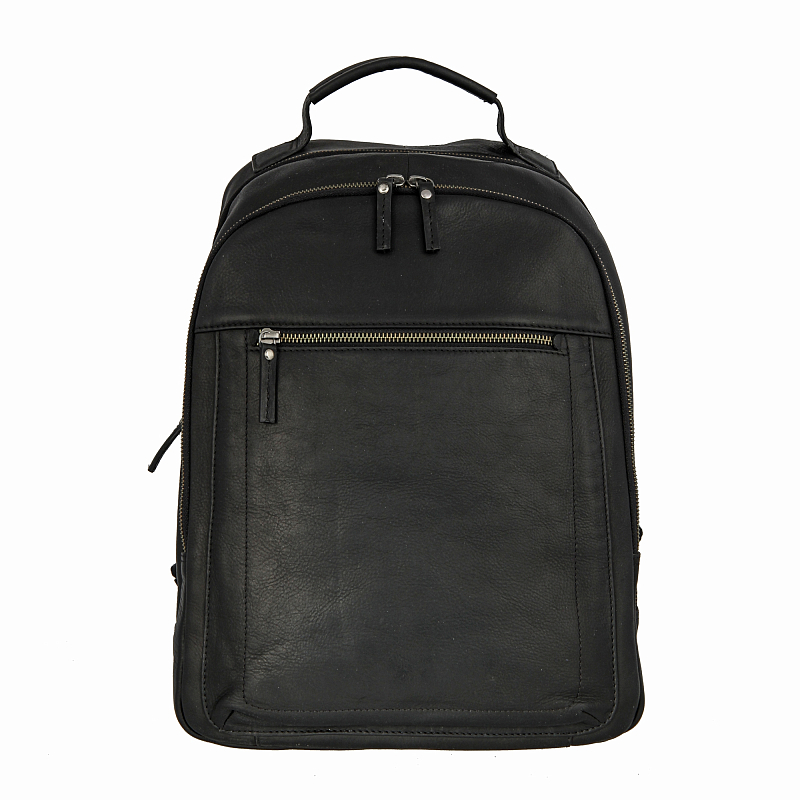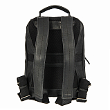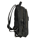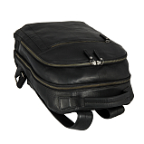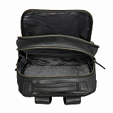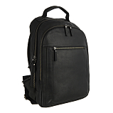 Кожаный рюкзак с двумя отделами на молнии. Основное отделение рюкзака имеет вертикальную загрузку, в нём есть внутреннее отделение для планшета или ноутбука на липучке, карман для документов на молнии. Во втором отделении, карман для документов на молнии, два кармашка для мелких предметов. С внешней стороны на лицевой стенке карман быстрого доступа на молнии. На задней стенке лямка для крепления на чемодан. Оснащён регулируемыми лямками.
