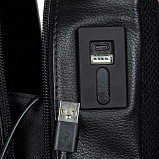 Рюкзак с отсеком для ноутбука, для деловых поездок и путешествий. Основное отделение рюкзака имеет вертикальную загрузку, в нём есть внутреннее отделение для планшета или ноутбука на липучке. Карман для мелких предметов на молнии, два держателя для авторучки, шесть кармашков для пластиковых карт, карман для мобильного телефона. С внешней стороны на лицевой стенке два кармана быстрого доступа на молнии. Оснащен плечевыми регулируемыми лямками. На боковой стороне рюкзака имеются USB и Type-C разъем для подключения телефонов, медиаплееров, многофункциональных устройств.