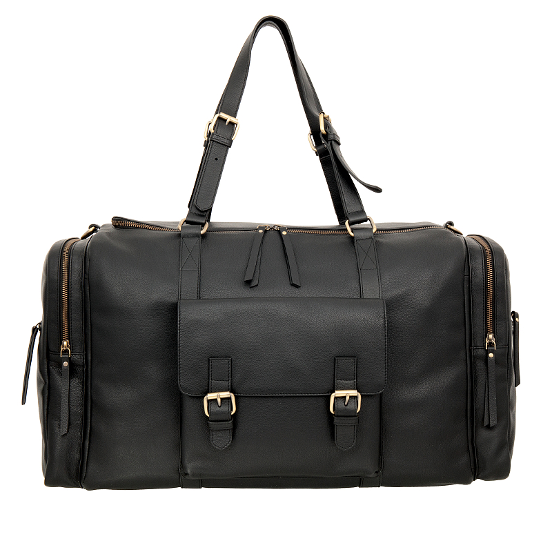 Дорожная кожаная сумка чёрного цвета от Sergio Belotti - идеально подойдёт для путешествий и занятий спортом. Выполнена из натуральной высококачественной мытой кожи растительного дубления. Сумка закрывается клапаном на двустороннюю молнию, внутри два кармашка для мелких предметов и карман для документов на молнии. Снаружи расположены функциональные карманы для эффективной организации пространства. Оснащена двумя удлинёнными регулируемыми ручками и съёмным регулируемым плечевым ремнём (60 см) на карабинах. Размеры: 33 х 55 х 30 см.