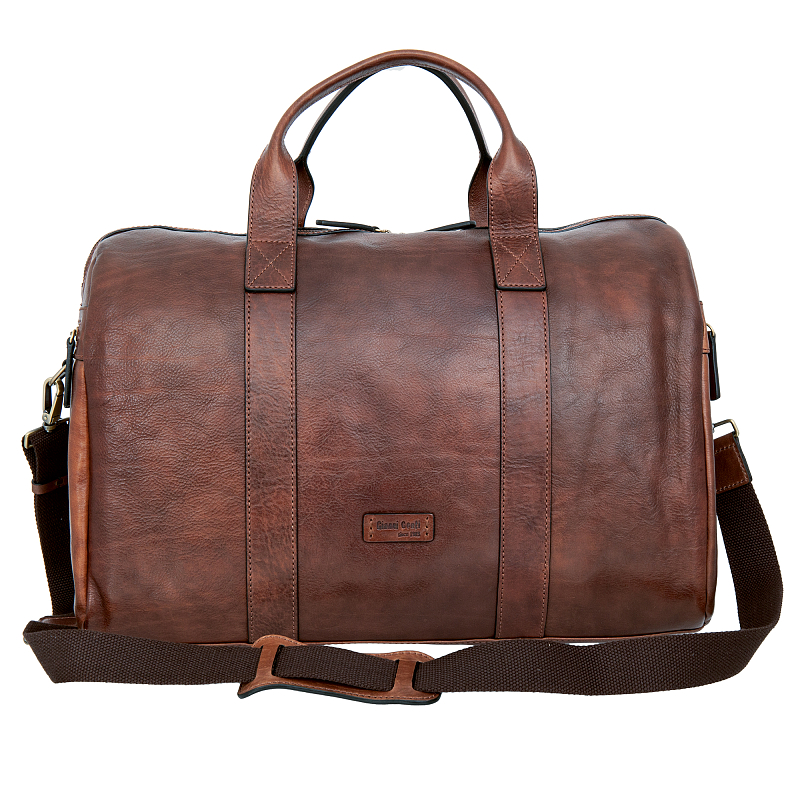 Кожаная дорожная сумка коричневого цвета от итальянского бренда Gianni Conti. Идеально подойдёт как ручная кладь для путешествий, так и для занятий спортом. Выполнена из натуральной высококачественной патинированной кожи, что придёт изделию винтажный вид. Сумка закрывается на двухстороннюю молнию, внутри четыре кармана для мелких предметов и два кармана на молниях. Снаружи расположены боковые карманы на молниях, на внутренней стороне открытый карман быстрого доступа на магните. Оснащена двумя удобными кожаными ручками и съёмным регулируемым плечевым ремнём на карабинах. На дне сумки расположены металлические ножки, защищающие изделие от влаги и загрязнений.