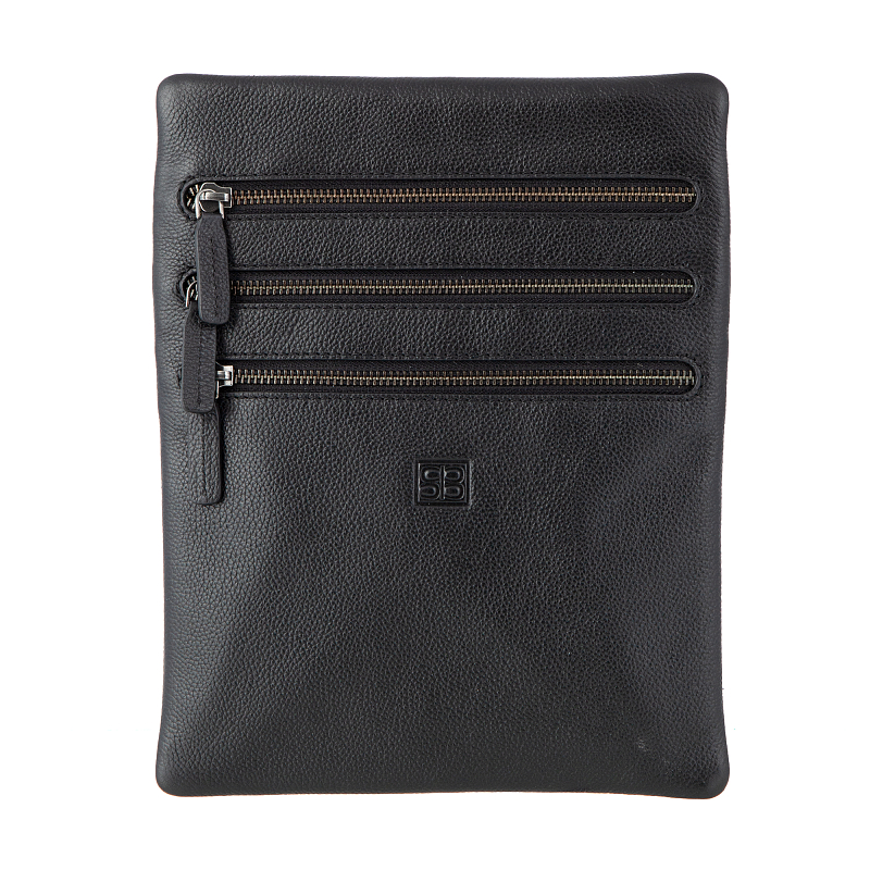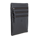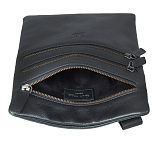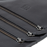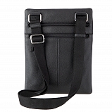 Миниатюрная мужская сумка через плечо из мягкой натуральной кожи зернистой фактуры. На лицевой и внутренней сторонах пять продольных отделений на молниях. Оснащена регулируемым плечевым ремнём. Размеры: 27 х 21,5 х 2 см.