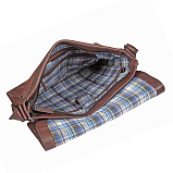 Внутри одно отделение, в котором расположены карман на молнии, карман для планшета на липучке и два кармашка для мелких предметов. Закрывается широким клапаном на магнитную кнопку и на молнию. С внешней стороны на лицевой и задней стенках по карману на молниях. Планшет оснащён регулируемым плечевым ремнём.