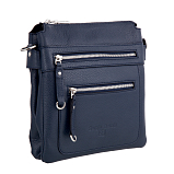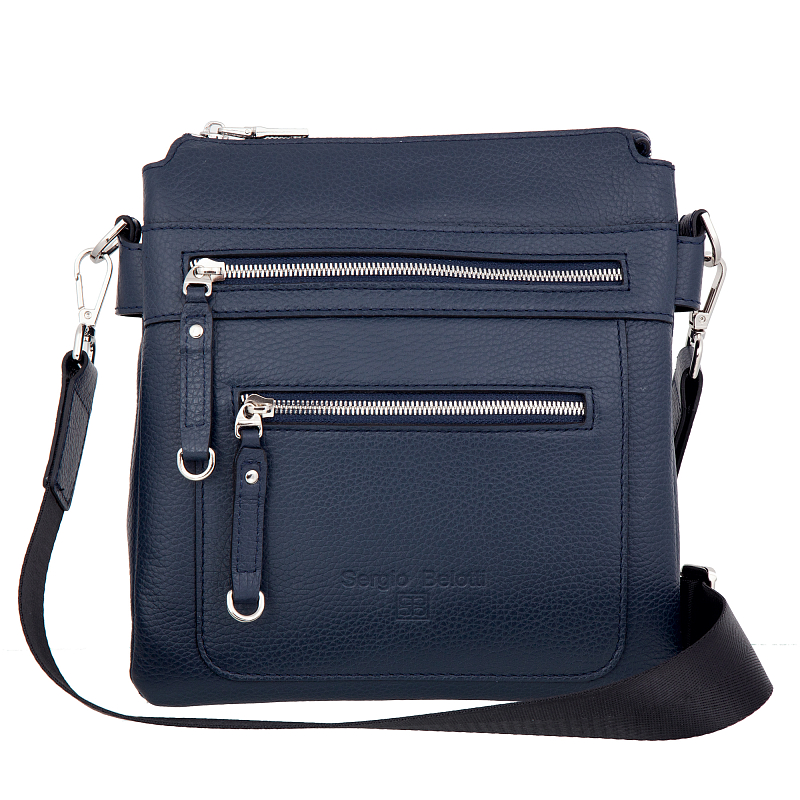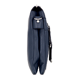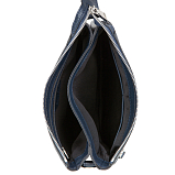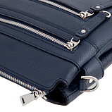 Мужской синий планшет из мягкой натуральной кожи зернистой фактуры. Внутри два основных отделения, карман для документов на молнии и два открытых кармашка для мелких предметов. На лицевой стороне два горизонтальных кармана на молниях. Планшет оснащён регулируемым плечевым ремнём, закрывается на молнию. Цвет фурнитуры - серебро. Размеры: 24 x 23 x 6 см.