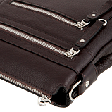 Мужской коричневый планшет из мягкой натуральной кожи зернистой фактуры. Внутри два основных отделения, карман для документов на молнии и два открытых кармашка для мелких предметов. На лицевой стороне два горизонтальных кармана на молниях. Планшет оснащён регулируемым плечевым ремнём, закрывается на молнию. Цвет фурнитуры - серебро. Размеры: 24 x 23 x 6 см.