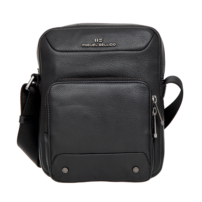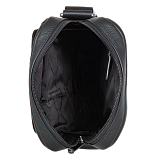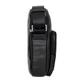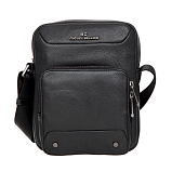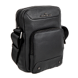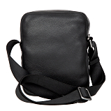 Сумка через плечо черного цвета из натуральной кожи. Сумка закрывается на молнию, внутри одно главное отделение, в котором расположены: карман на молнии и карман для мобильного телефона, два держателя для авторучки. С внешней стороны на лицевой стенке расположен отдел на молнии. Сумка оснащена съёмным регулируемым плечевым ремнём на карабинах.