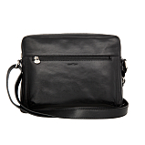 Мужская классическая сумка из натуральной кожи чёрного цвета от бренда Gianni Conti. Внутри одно основное отделение, в котором расположены продольный карман на молнии, один открытый карман, два кармашка для мелких предметов, карман для документов на молнии и держатель для авторучки. Снаружи на лицевой и внутренней сторонах карманы быстрого доступа на молниях. Планшет закрывается на молнию, оснащён кожаным регулируемым плечевым ремнём. Цвет фурнитуры - винтажное серебро. В комплекте фирменный мешок-пыльник.