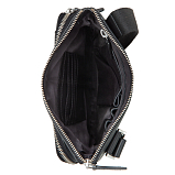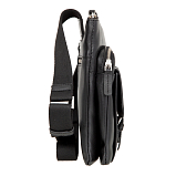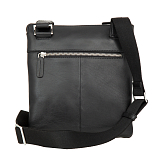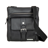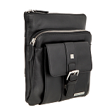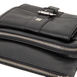 Мужская сумка-планшет чёрного цвета из мягкой натуральной кожи гладкой фактуры. Сумка состоит из двух отделений на молнии. В нутри расположены 5 кармашков для пластиковых карт, карман для документов на молнии, карман для мобильного телефона, 2 держателя для авторучки. Снаружи на лицевой стороне расположен карман, закрывается клапаном на магнитной кнопке, на задней стенке карман на молнии. Планшет оснащён регулируемым плечевым ремнём. Цвет фурнитуры - серебро. Размеры: 23,5 x 21 x 6,5 см.