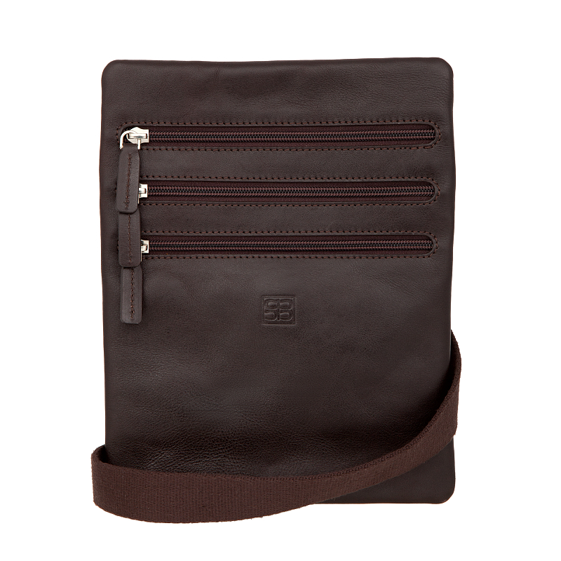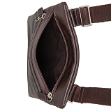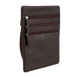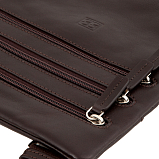 Мужской планшет из натуральной кожи тёмно-коричневого цвета. На лицевой стороне расположены 3 горизонтальных кармана на молнии. Снаружи: на задней стенке 2 дополнительных горизонтальных кармана на на молнии. Планшет оснащён регулируемым плечевым ремнём.