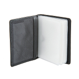Внутри блок, состоящий из восьми прозрачных файлов для пластиковых карт. На внутренних сторонах по одному сетчатому карману.