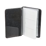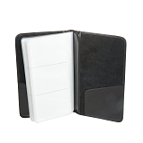 Внутри блок прозрачных файлов, состоящий из двенадцати листов, вмещающих тридцать шесть карточек. Внутренние стороны идентичны и имеют по одному карману для документов и угловому кармашку для бумаг.