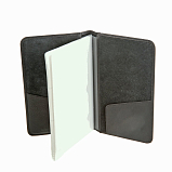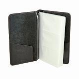 Внутри блок прозрачных файлов, состоящий из двенадцати листов, вмещающих тридцать шесть карточек. Внутренние стороны идентичны и имеют по одному карману для документов и угловому кармашку для бумаг.