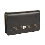 Внутри большое отделение для визитных карт, два кармана для пластиковых карт. Закрывается клапаном на кнопке.