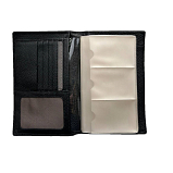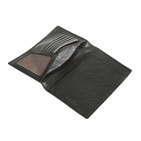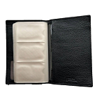 Внутри блок, состоящий из двенадцати прозрачных листов, на каждом из которых расположены по шесть отделений для визиток. На внутренней стороне расположены два кармана для документов, потайной и сетчатый карман, а также шесть кармашков для визиток или пластиковых карт.